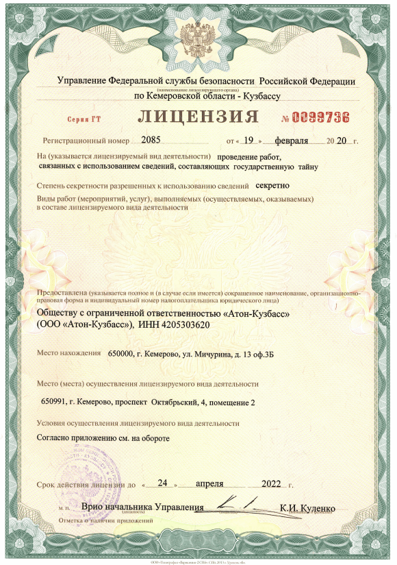 Получена лицензия ФСБ.