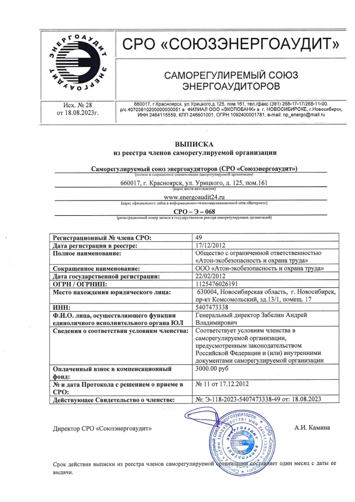 «Атон - Экобезопасность и охрана труда» открывает орган инспекции г.Новосибирск.