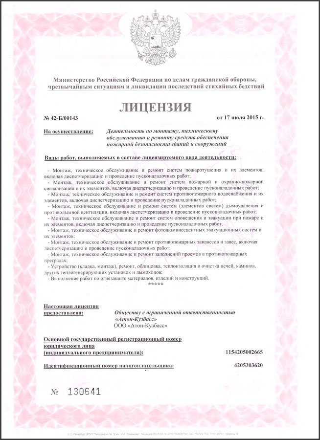 2015 – Получена лицензия МЧС.