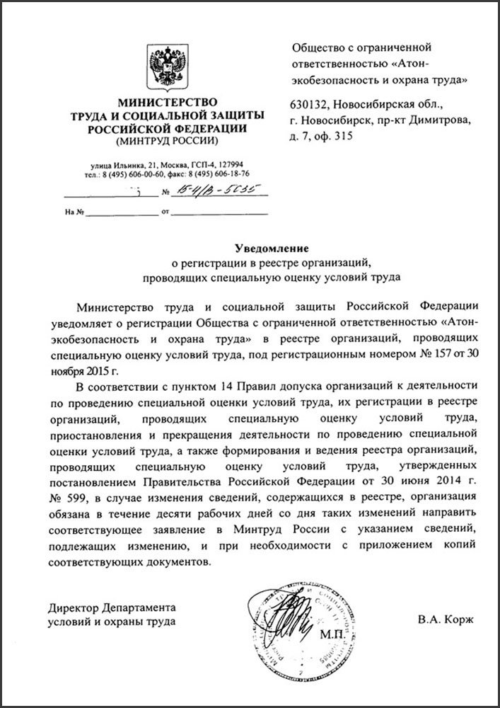 «АТОН» вошел в реестр организаций, оказывающих услуги в области охраны труда.