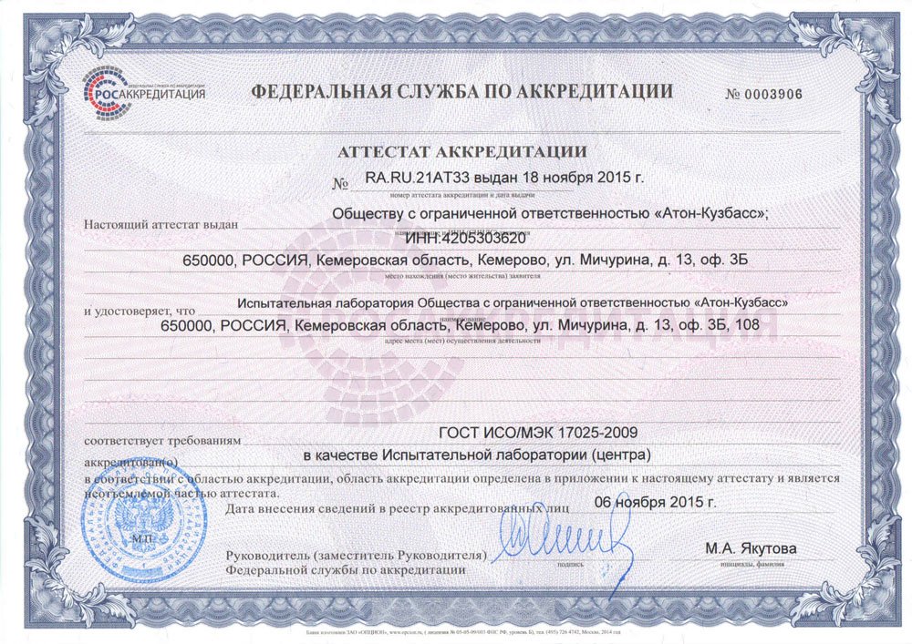 2011 – Лаборатория «АТОН» получает аккредитацию в системе ГОСТ – Р (Росаккредитация).