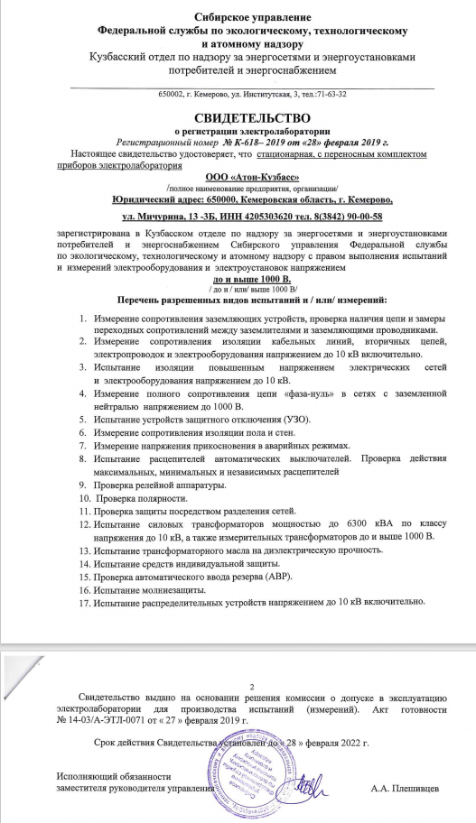 2020 – «АТОН-Кузбасс» получает диплом Лауреата конкурса «Лучшие товары и услуги Кузбасса», услуги электротехнической лаборатории.