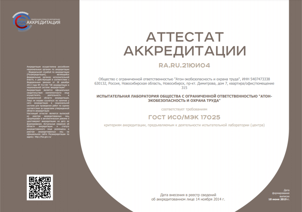 Все работы выполняются силами собственных аккредитованных лабораторий ГК «АТОН», расположенных в Новосибирске, Томске.